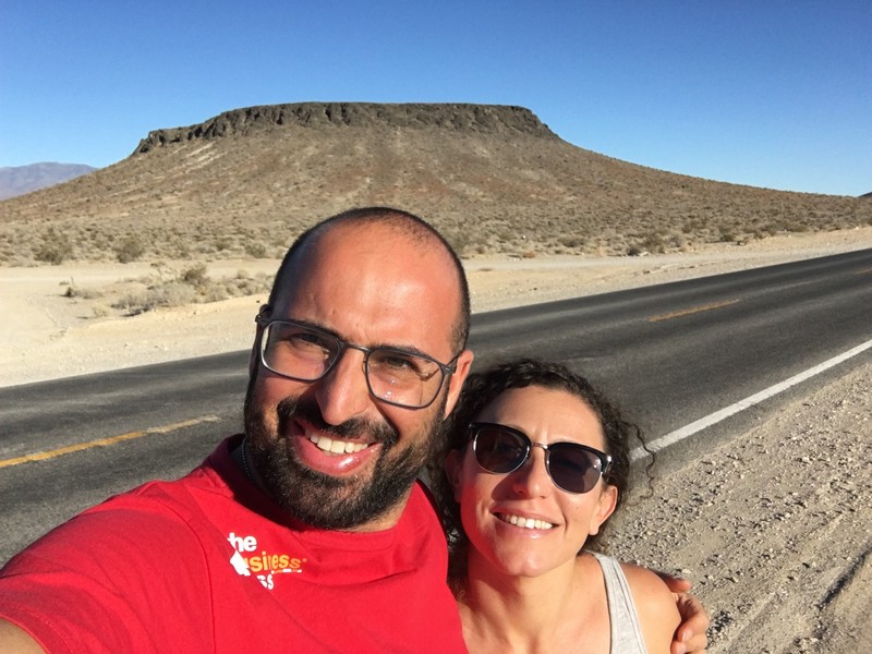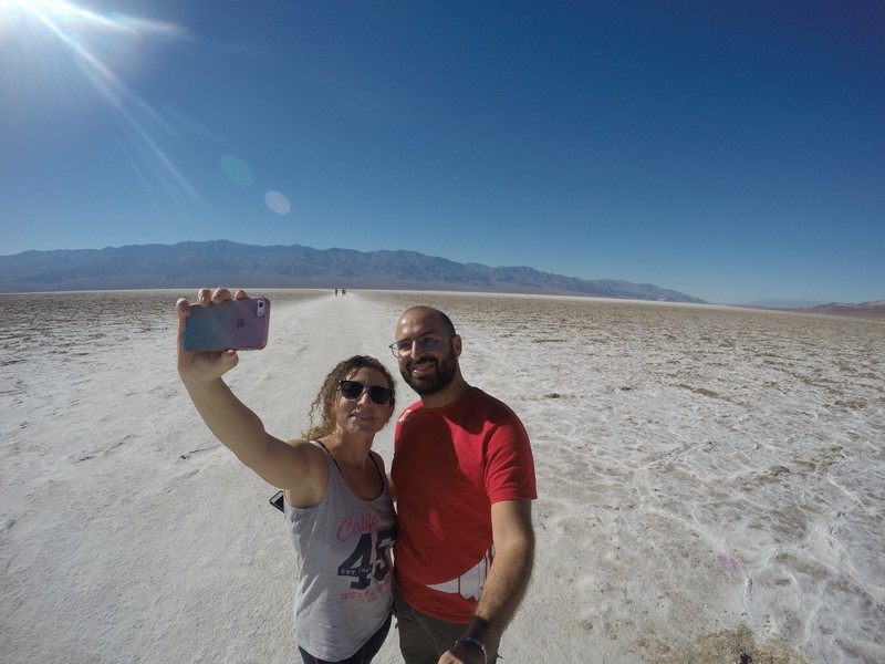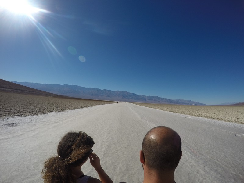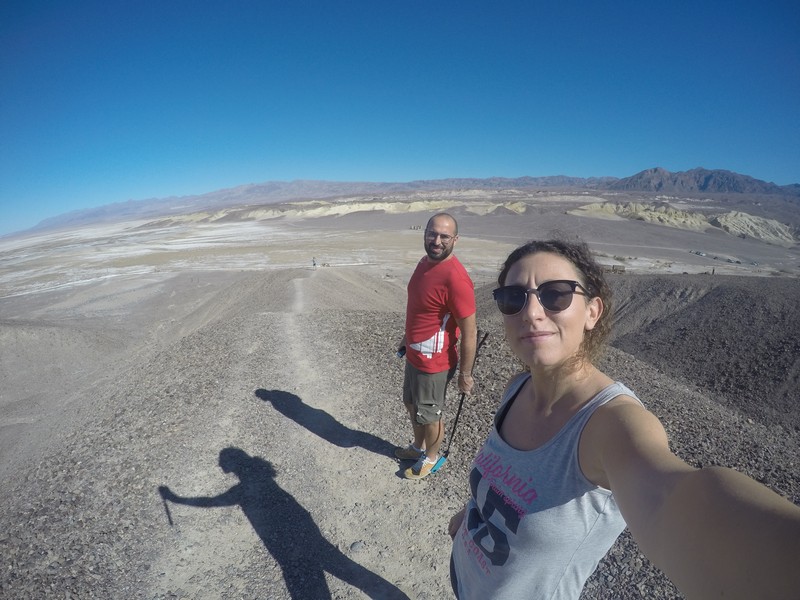 La Valle della Morte è una metà che ci incuriosiva tanto, sia per il nome, che per le tante storie lette qua e là, prima di partire.. Beh, di sicuro ce la ricorderemo per l’abbagliate sole e per il caldo incessante che stordiscono, non che sia un caldo mai provato prima, però considerando che ieri abbiamo fatto colazione e -2 gradi ed oggi alla stessa ora ce ne erano già 15, il nostro termostato interno è andato in confusione.