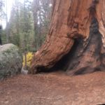 Dopo una serie quasi interminabile di stretti tornanti arriviamo nel parcheggio del General Grant Groove, l’atmosfera rispetto a ieri è cambiata notevolmente, siamo completamente immersi nelle nuvole e l’aria che respiriamo ha un sapore di muschio e di un nonsoché mai sentito prima. Finalmente imbocchiamo il sentiero che ci conduce verso una serie di sequoie millenarie, di cui ancora ignoriamo le dimensioni, è vero che sono descritte come “giganti” ma finchè la prima non ti si para davanti il termine gigante ha tutto un altro significato!! Vedere questa enormità davanti a te, restituisce un senso di vigore, arcaico e maestoso che fa pensare a quanto possa essere lunga una vita.
