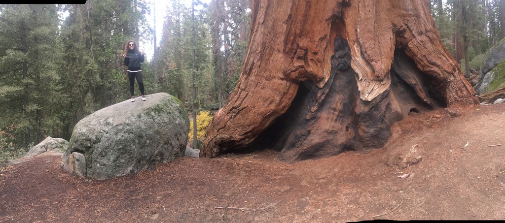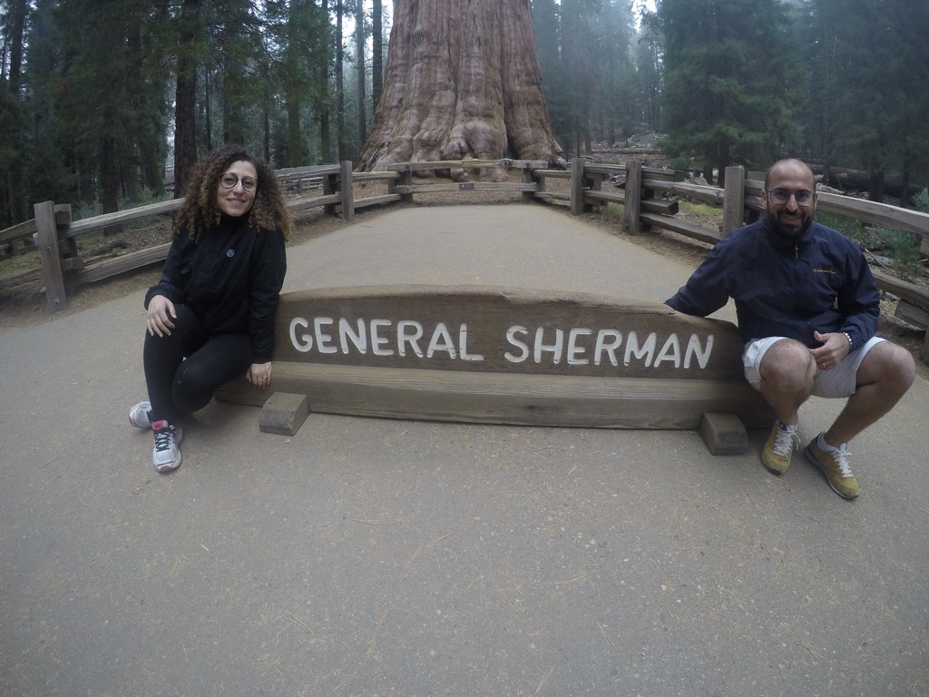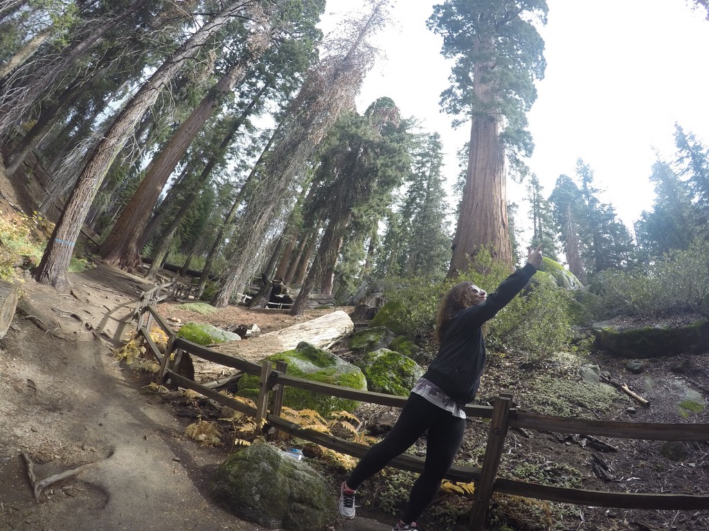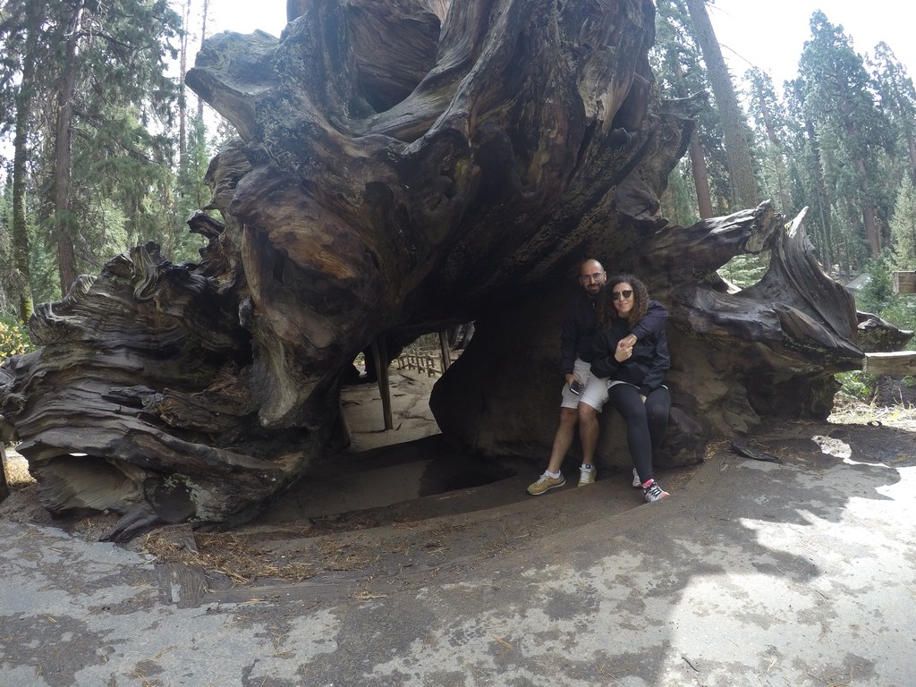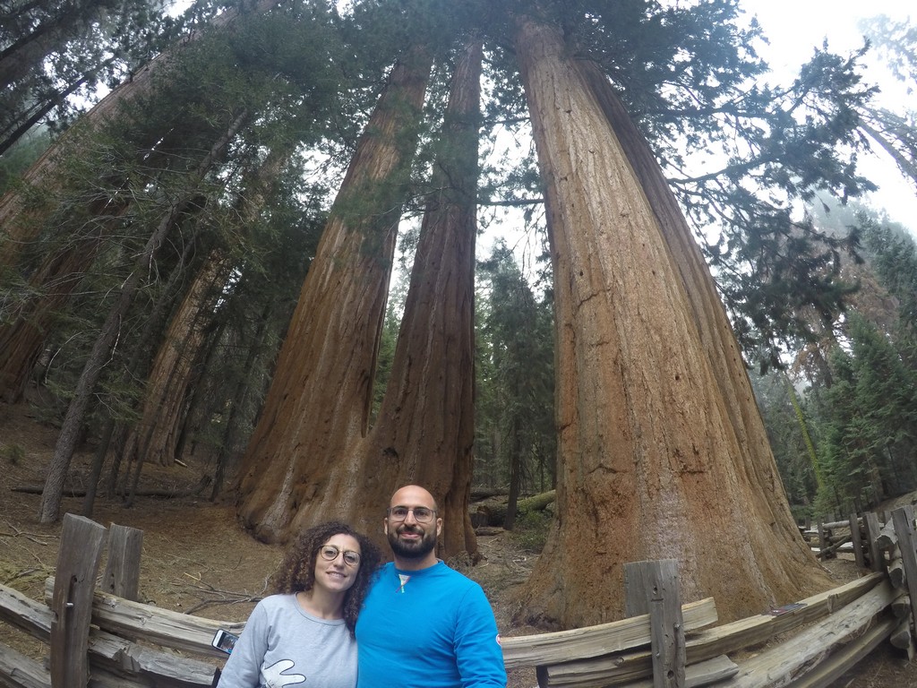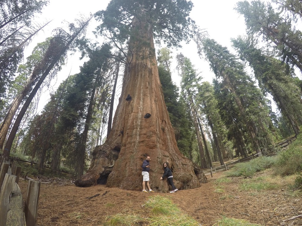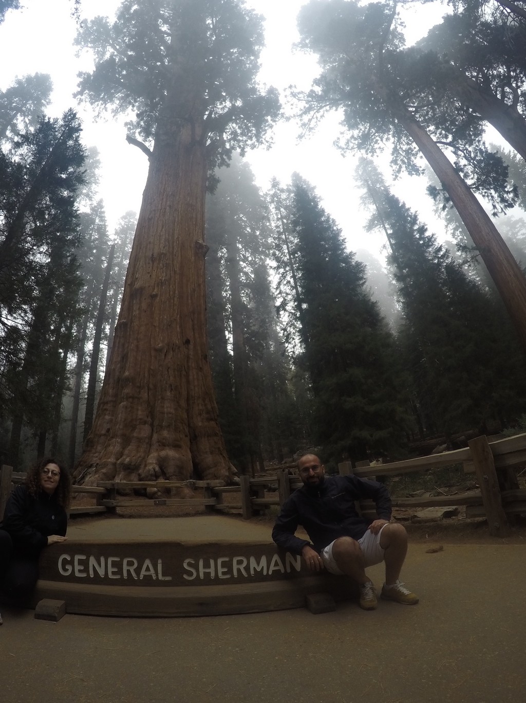 Dopo una serie quasi interminabile di stretti tornanti arriviamo nel parcheggio del General Grant Groove, l’atmosfera rispetto a ieri è cambiata notevolmente, siamo completamente immersi nelle nuvole e l’aria che respiriamo ha un sapore di muschio e di un nonsoché mai sentito prima. Finalmente imbocchiamo il sentiero che ci conduce verso una serie di sequoie millenarie, di cui ancora ignoriamo le dimensioni, è vero che sono descritte come “giganti” ma finchè la prima non ti si para davanti il termine gigante ha tutto un altro significato!! Vedere questa enormità davanti a te, restituisce un senso di vigore, arcaico e maestoso che fa pensare a quanto possa essere lunga una vita.